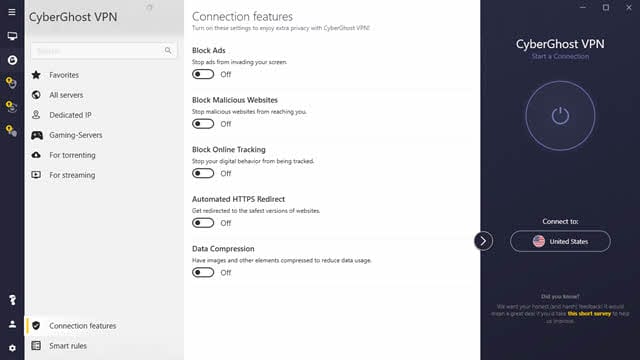 • 无法在线欣赏您喜欢的节目?借助免费VPN代理服务,您可以轻松地解除对那些受地理限制的网站的访问,并访问您备受期待的电视节目。